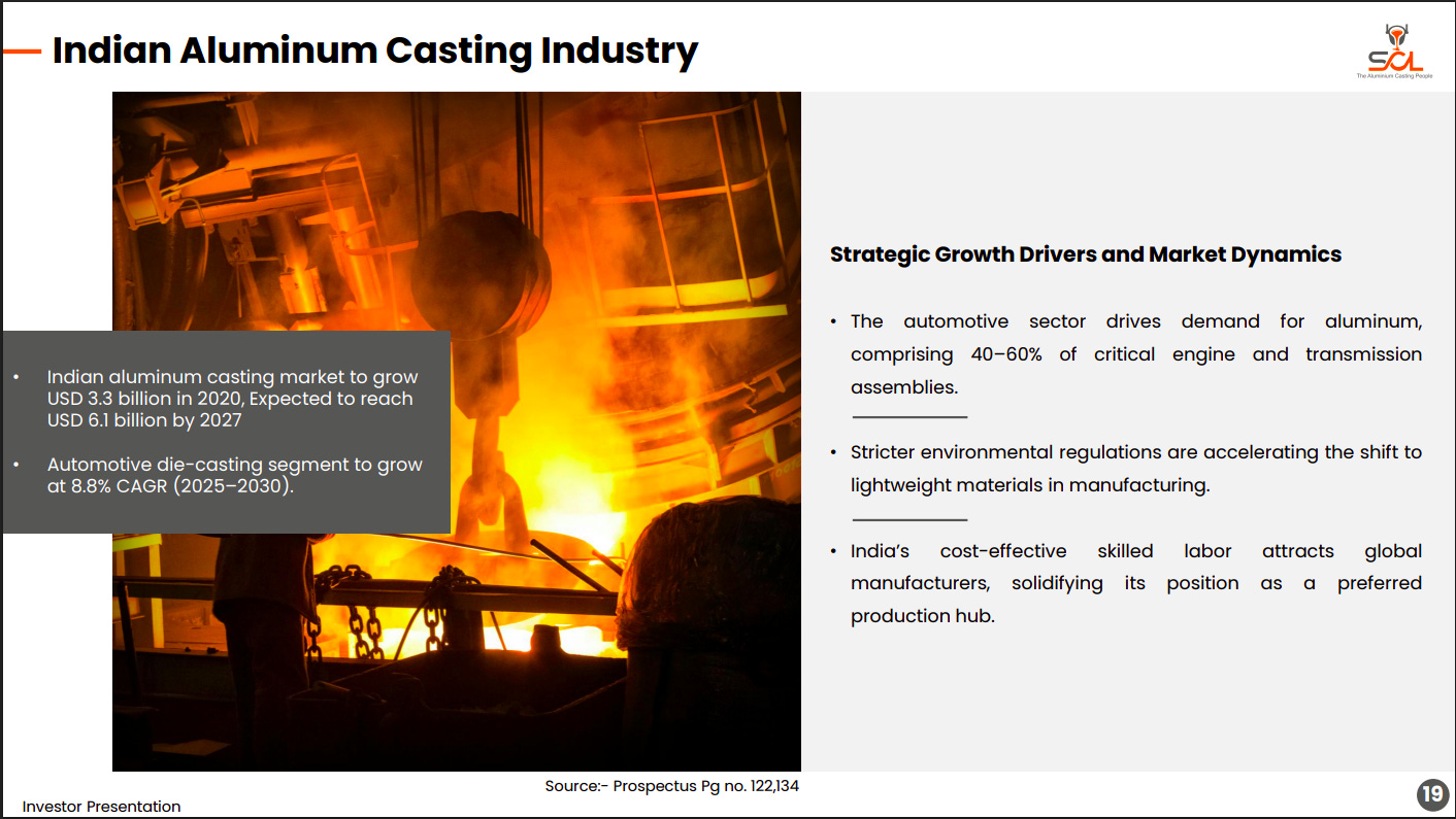 India’s aluminium casting market is projected to grow from about USD 3.3 billion in 2020 to USD 6.1 billion by 2027, driven primarily by automotive die-casting. Stricter emission norms, lightweighting trends, and India’s cost-competitive manufacturing base are strengthening its position as a global production hub.