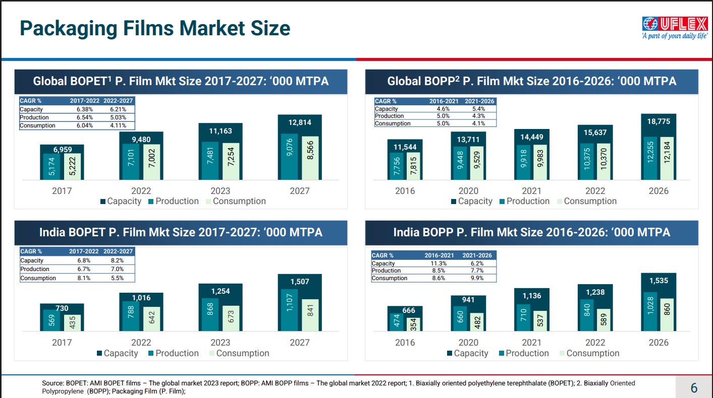 Both global and Indian BOPET/BOPP film markets are on a steady growth trajectory, driven by rising consumption, higher capacity utilization, and downstream FMCG demand. India is growing faster than global averages, supported by capacity additions and export competitiveness.