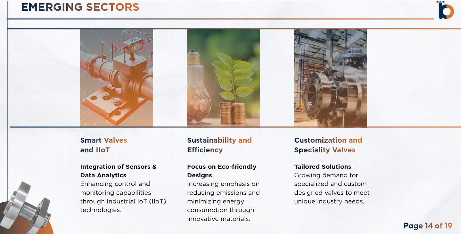 The focus is on next-generation growth areas such as smart valves integrated with IIoT, sustainability-driven efficiency solutions, and customized specialty valves. These trends reflect a shift toward digital monitoring, eco-friendly designs, and tailored products to meet complex, industry-specific requirements.