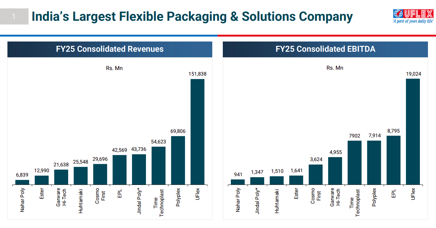 India’s flexible packaging market is consolidating, with scale players like UFlex leading on revenues and EBITDA in FY25. Strong integration, diversified end markets, and operating leverage position large players to benefit disproportionately from industry growth.