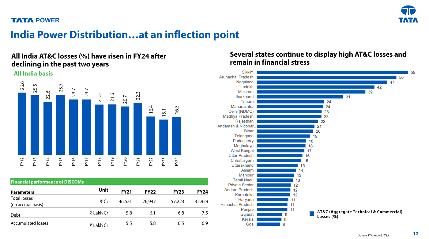 India’s power distribution sector is at an inflection point, with AT&C losses rising again in FY24 after two years of improvement. Several states continue to report very high losses, keeping DISCOM finances under strain despite recent reform efforts.
