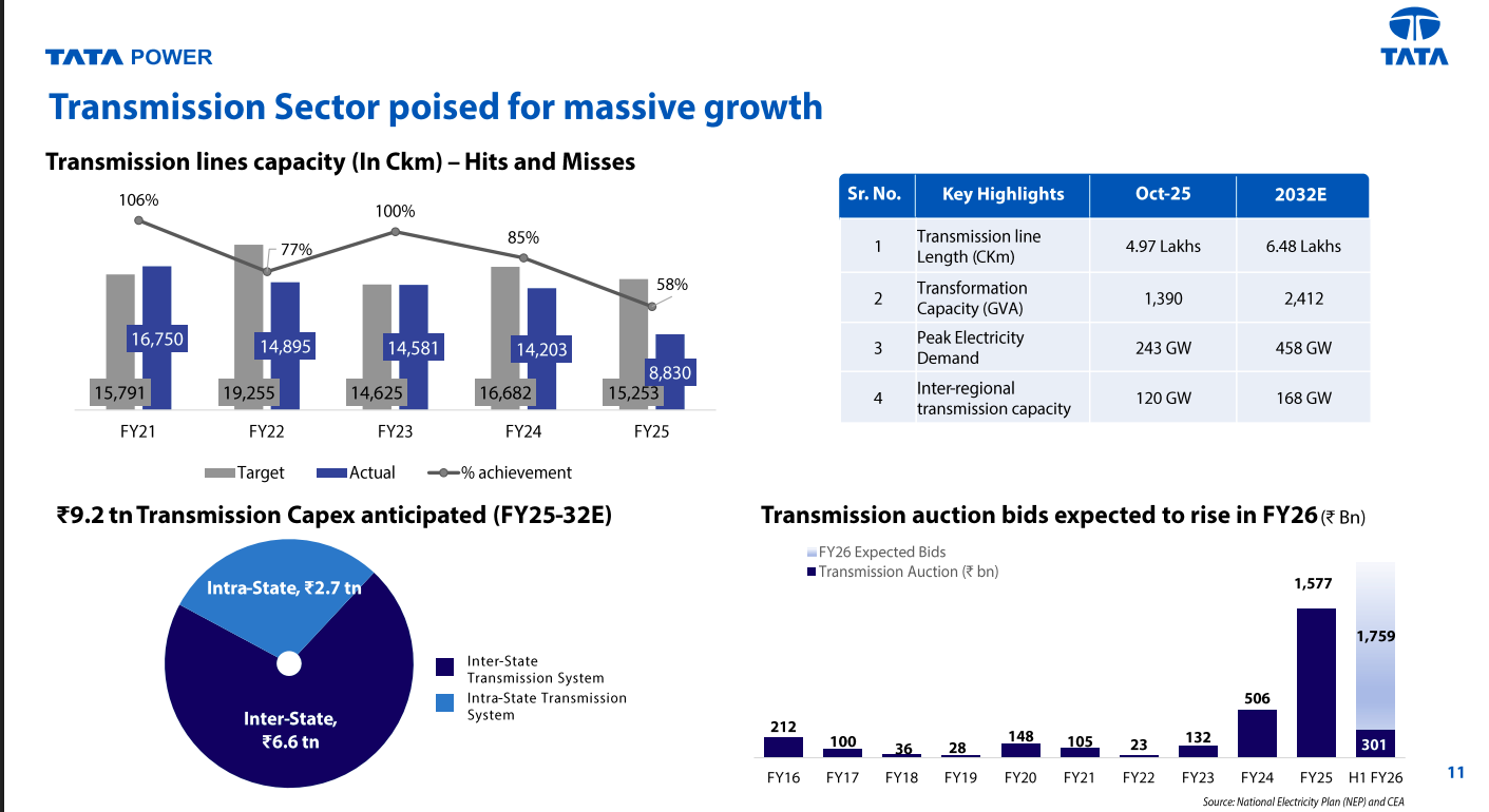 India’s transmission sector is set for strong multi-year growth, driven by rising power demand and renewable integration. Transmission capex of ~₹9.2 trillion is expected through FY32, with auction activity and network expansion accelerating meaningfully from FY26 onward.