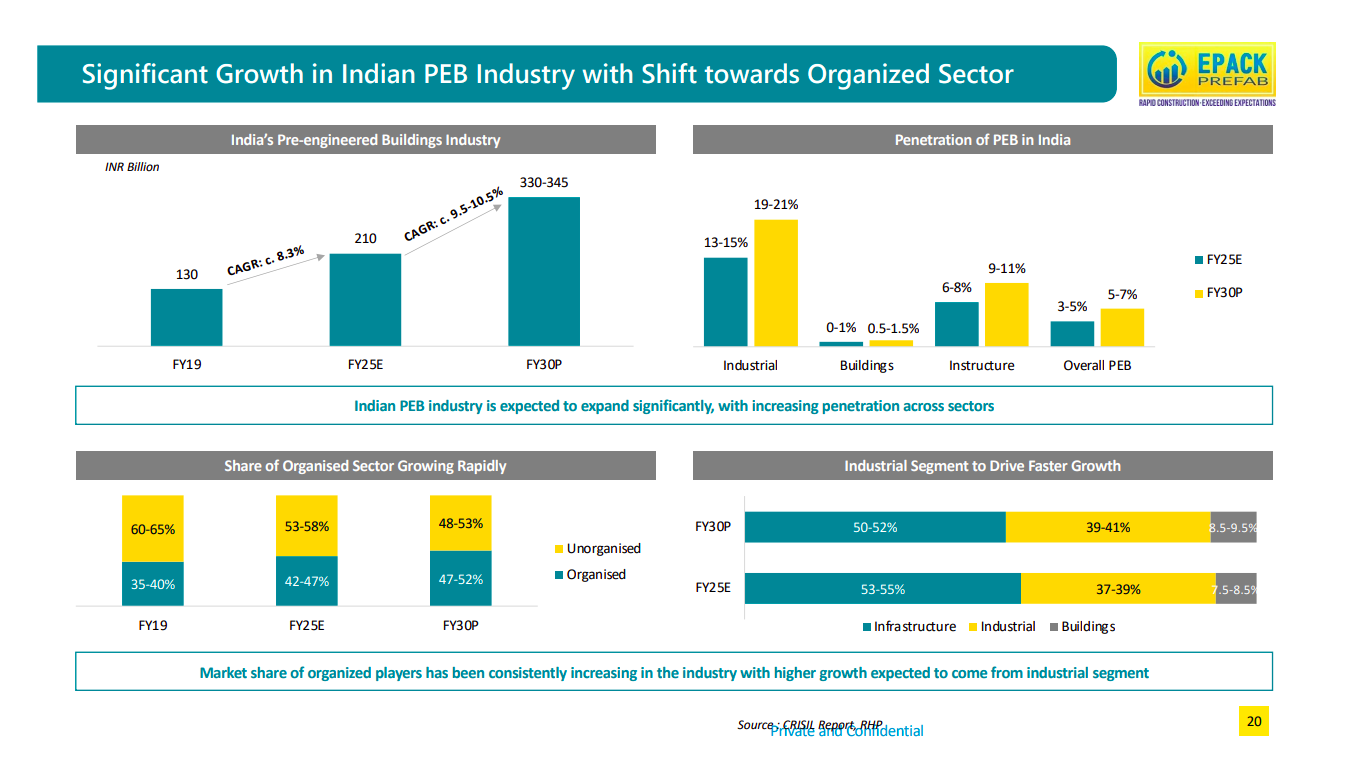 EPack has delivered ~46% revenue CAGR in its prefab business (FY22–25), far outpacing industry growth. Its end-to-end turnkey capabilities and wide prefab portfolio position it as a scaled, integrated solutions provider.