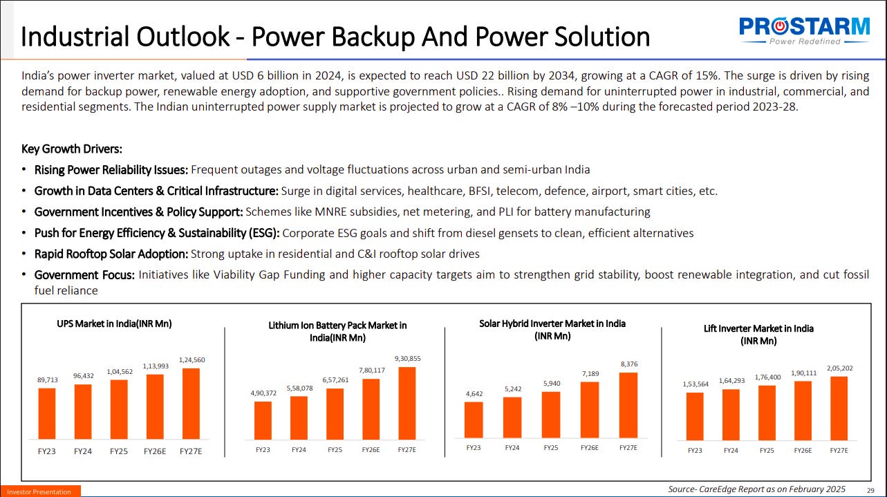 India’s inverter and backup power market is expected to grow steadily, fueled by rising power reliability concerns, data center expansion, and ESG-driven energy shifts. Strong growth is visible across UPS, lithium-ion battery packs, solar hybrid inverters, and lift inverter segments through FY27E.