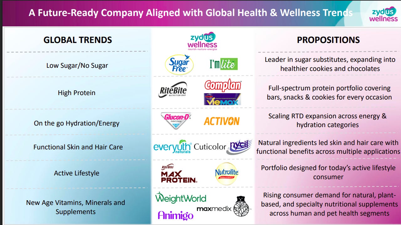 Zydus is aligning with structural trends like low sugar, high protein, functional nutrition, and natural personal care. The strategy focuses on premiumization, portfolio expansion, and tapping health-conscious consumption across categories.