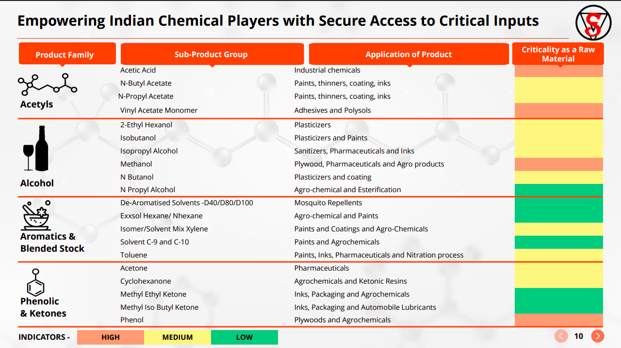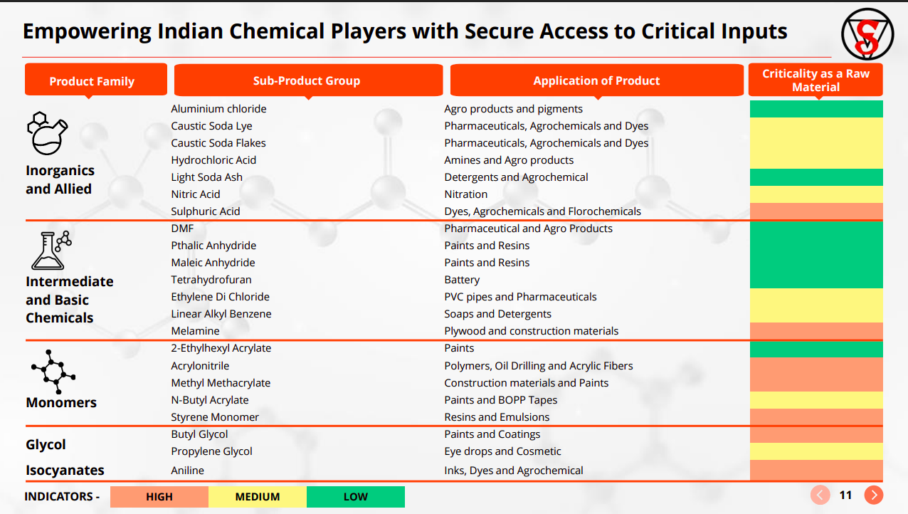 Shiv Texchem operates across a wide basket of essential chemicals spanning inorganics, intermediates, monomers, and glycols, supplying critical inputs to pharma, agrochemicals, paints, and construction. Many of these inputs have high supply criticality, reinforcing the importance of reliable sourcing.