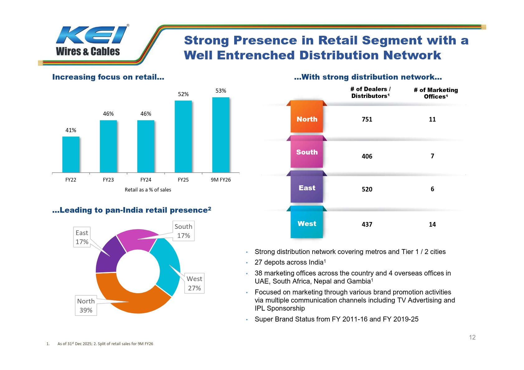KEI’s retail sales are growing significantly, now accounting for over 50% of total sales. This shift reflects a strategic focus on direct consumer engagement, which could lead to higher margins and more predictable demand.