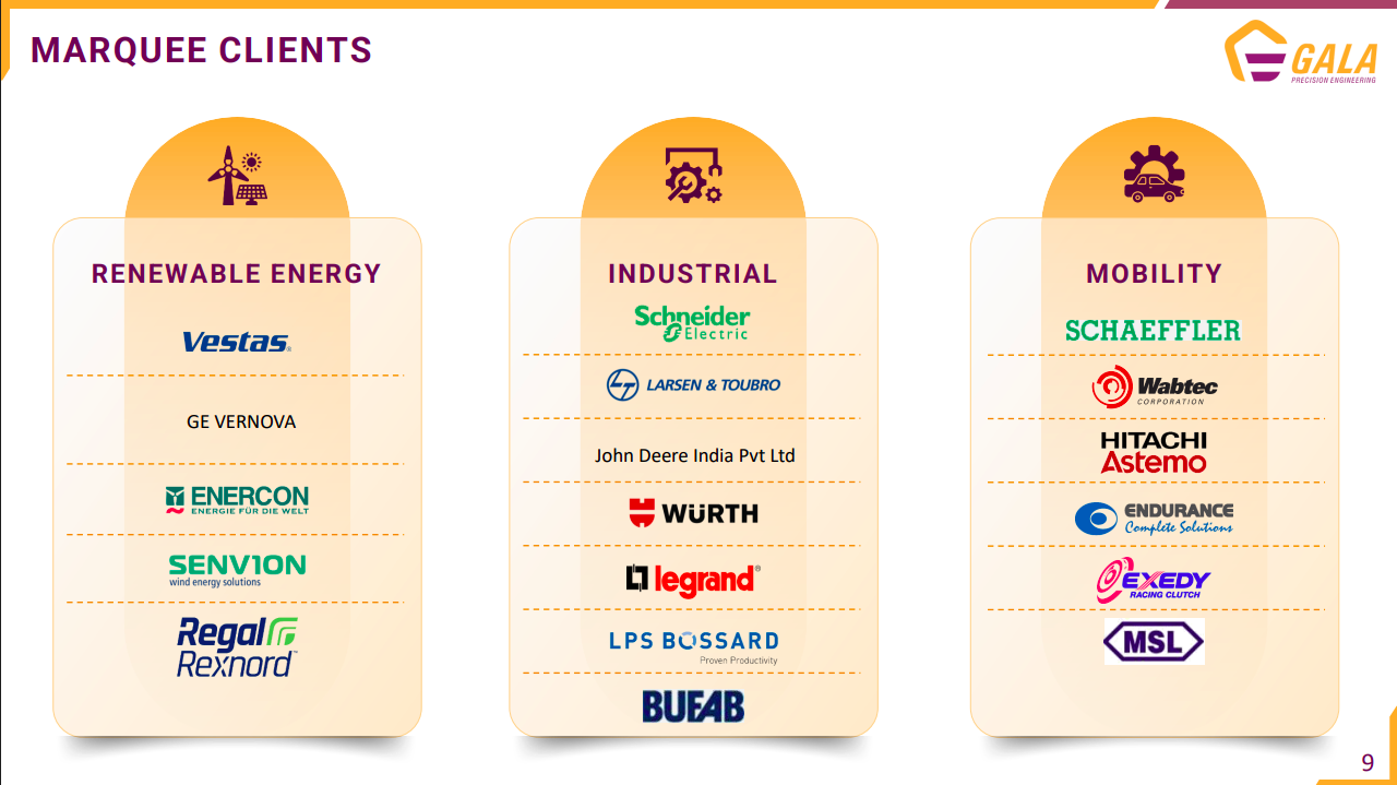 GALA has built strong relationships across renewables (Vestas, GE), industrials (Schneider, L&T), and mobility (Schaeffler, Wabtec). This diversified client base supports revenue visibility and credibility across sectors.