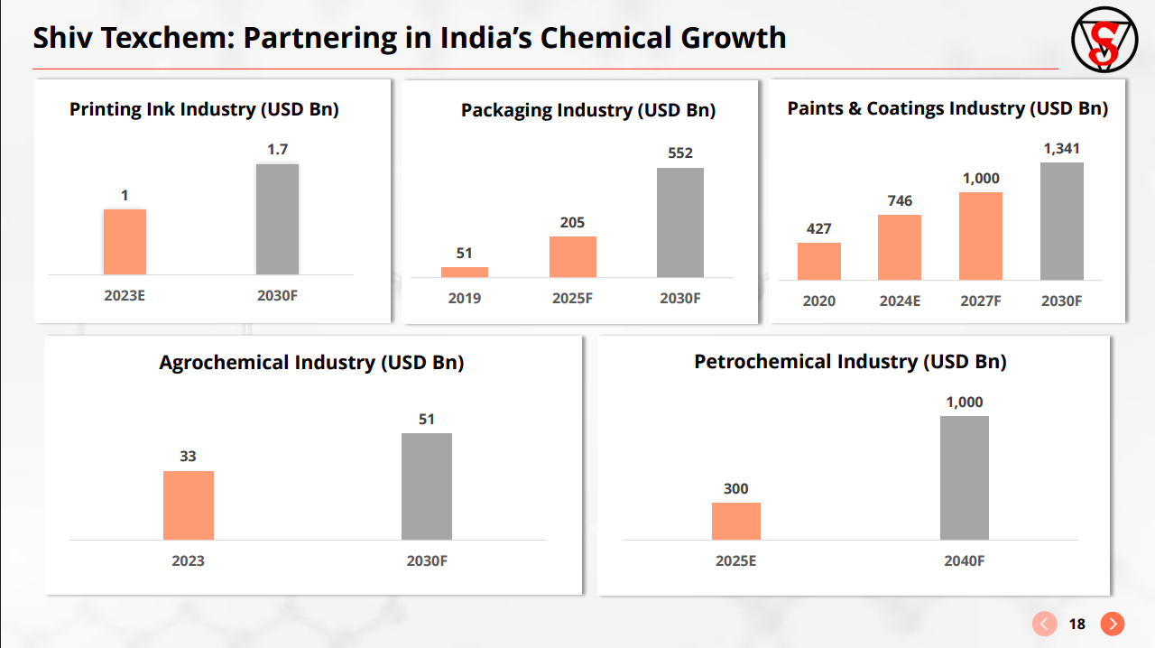 The company is leveraged to structurally growing sectors—paints, packaging, agrochemicals, petrochemicals, and inks, all expected to see strong multi-year expansion. This creates sustained demand visibility for sourced chemicals.