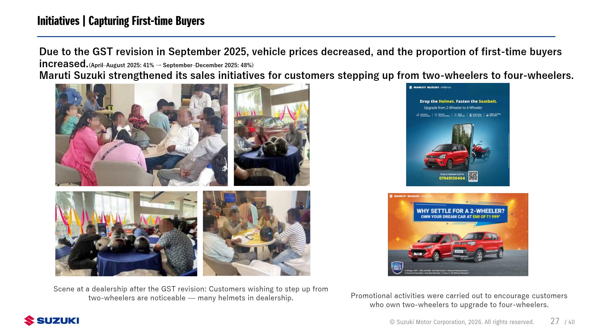 The 2025 GST revision acts as a catalyst for entry-level demand by narrowing the price gap with premium motorcycles. Restoring momentum in this segment is crucial for recharging the customer funnel and maintaining dominant market share.