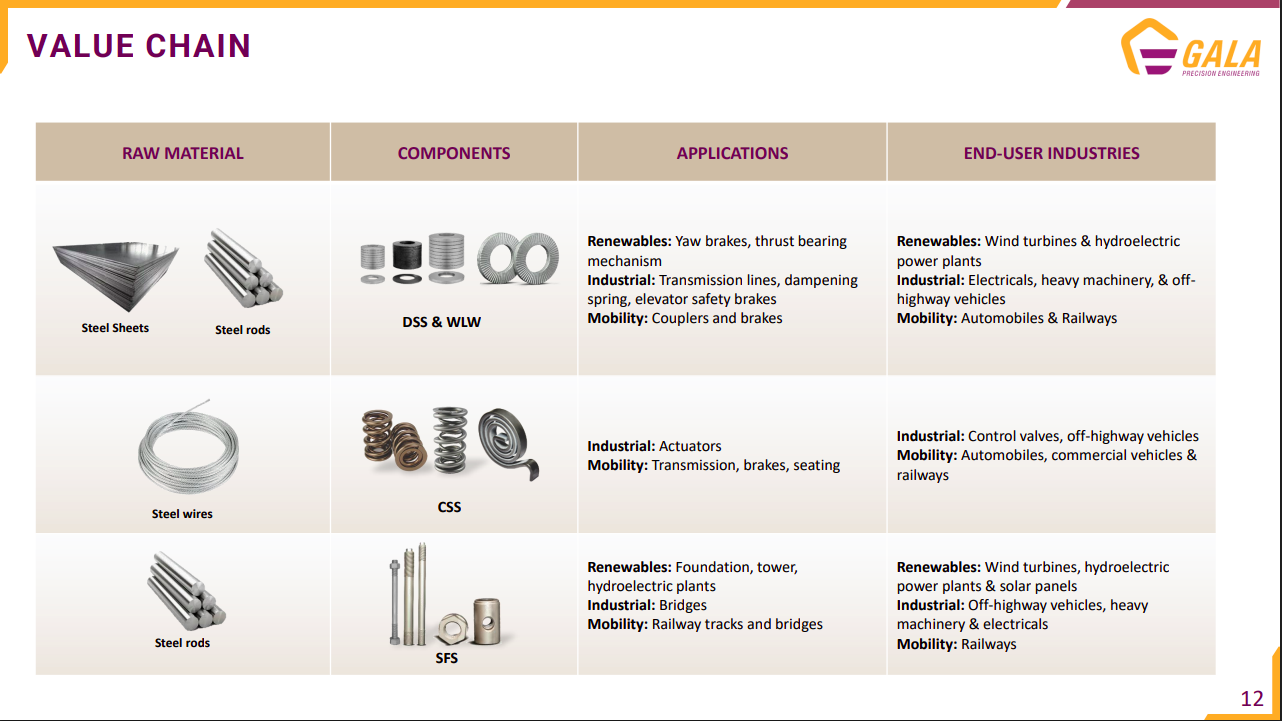 Gala Precision Engineering Ltd. manufactures high-quality technical springs and high-tensile fasteners. It serves the renewable energy, mobility, and industrial sectors.