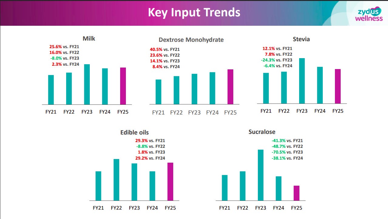 Input costs remain volatile—milk, dextrose, and edible oils saw inflation spikes, while sucralose prices corrected sharply. This mixed cost environment has implications for margin recovery and pricing strategies.