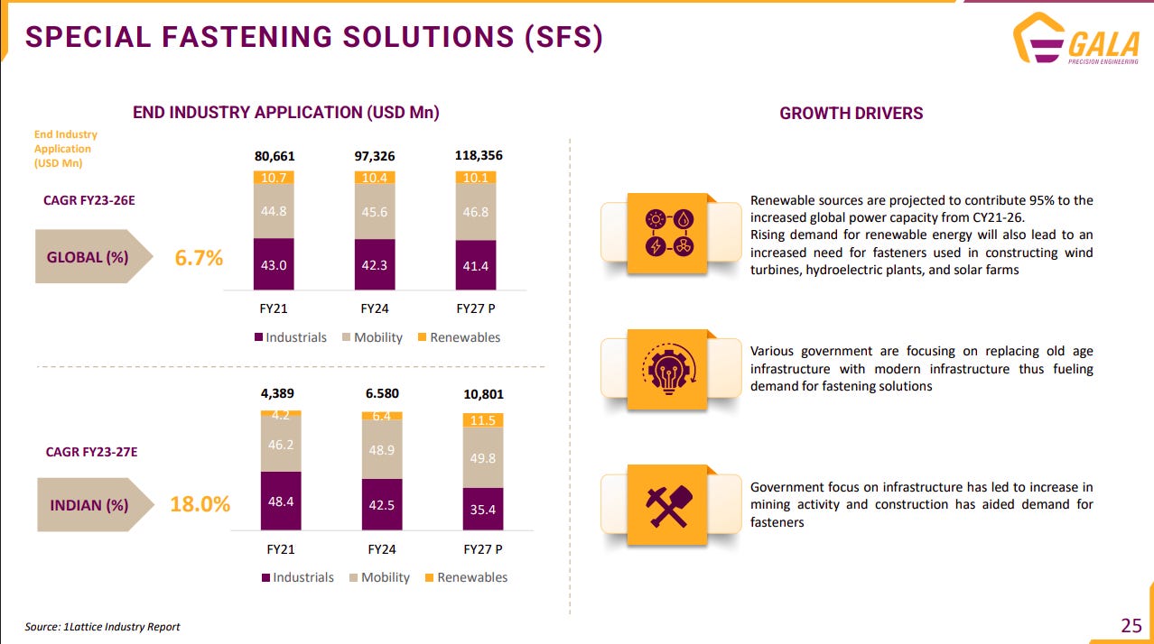 GALA’s product portfolio spans renewables, industrials, and mobility, with SFS having the widest application coverage. This diversified exposure provides multi-cycle growth optionality.
