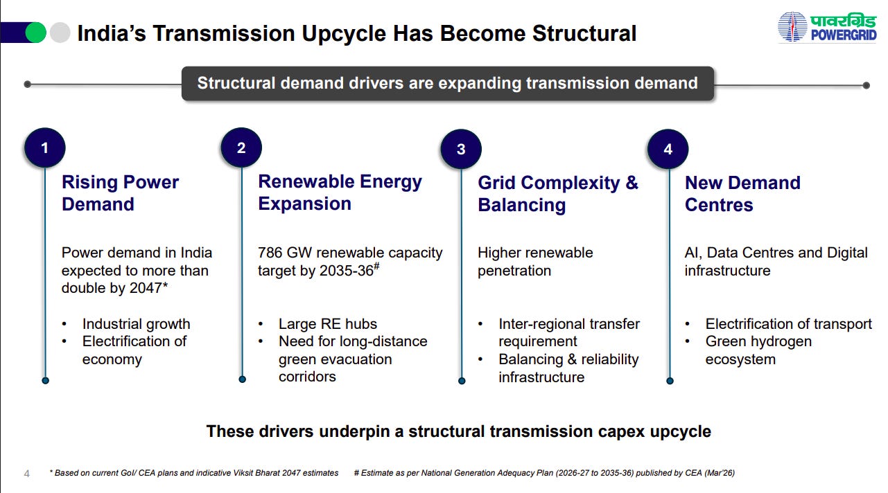 Transmission demand is being driven by long-term structural shifts—rising power demand, renewable expansion, and increasing grid complexity. This makes the capex cycle sustained and predictable rather than short-lived.