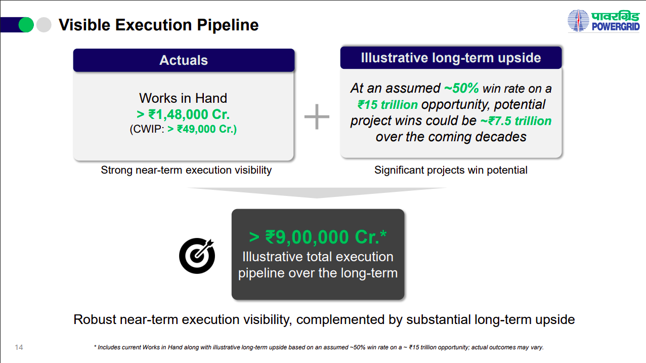 Near-term visibility remains robust with ₹1.48 lakh crore order book, while the long-term opportunity is massive. Even at a conservative win rate, this translates into a multi-lakh crore execution runway (~₹9 lakh crore).