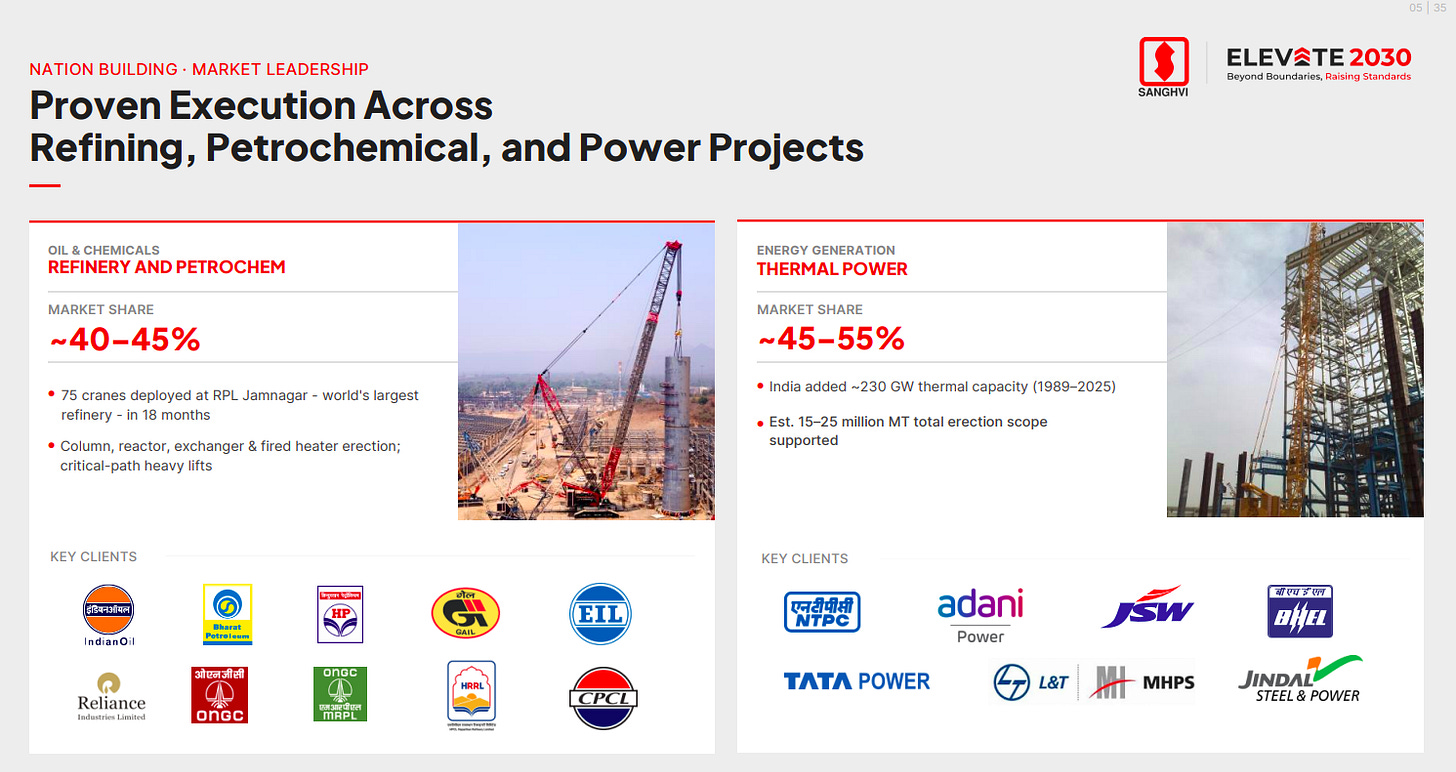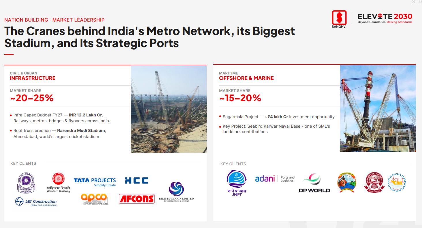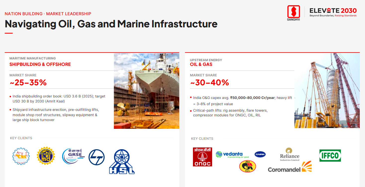 Strong positioning in high-value, critical lifts (~30–40% share) where execution complexity creates entry barriers. With India’s O&G capex cycle picking up, this segment offers high-ticket, margin-accretive opportunities.