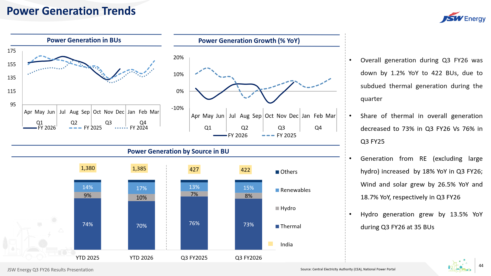 Renewables are actively displacing thermal generation, which has contracted to 73% of the total generation mix. Incremental demand is increasingly captured by green assets that benefit from lower variable costs.