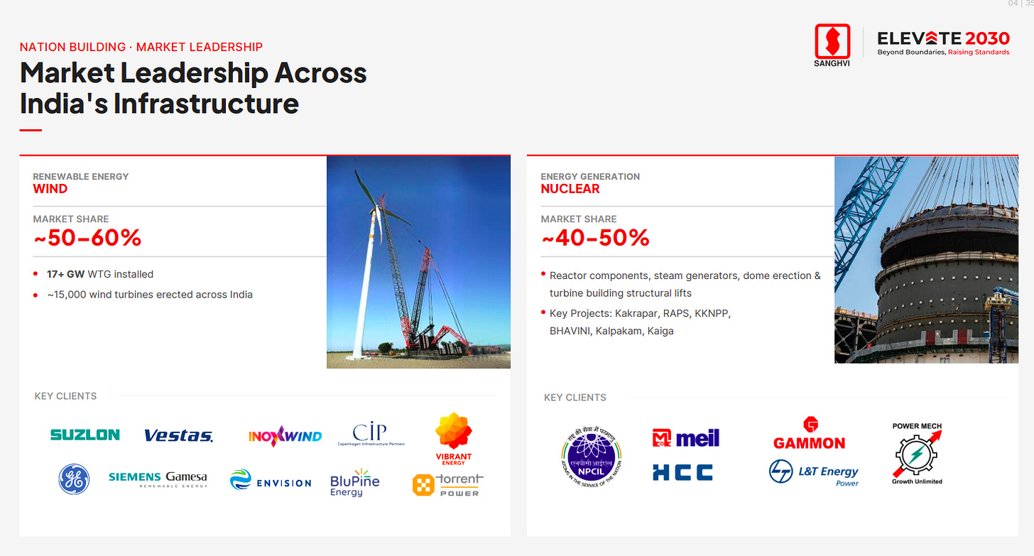 Leadership in wind (~50–60% share) and strong presence in nuclear reflects positioning in next-gen energy infrastructure. This is a key strategic pivot toward long-term, structurally growing segments.