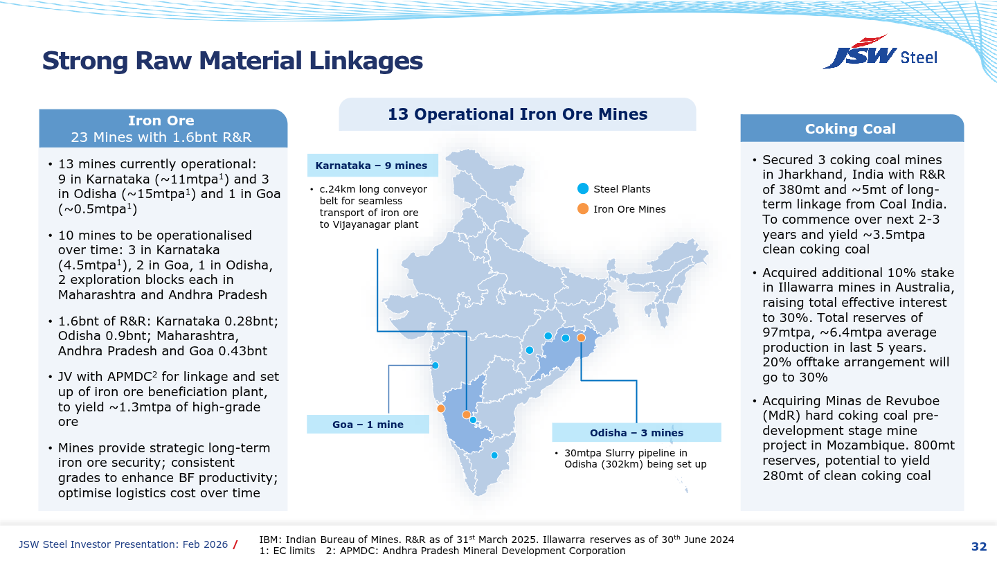 Securing 1.6 billion tonnes of iron ore and coking coal assets in Australia and Mozambique insulates JSW from global raw material shocks. Vertical integration is the essential defense for protecting unit economics as production capacity doubles.