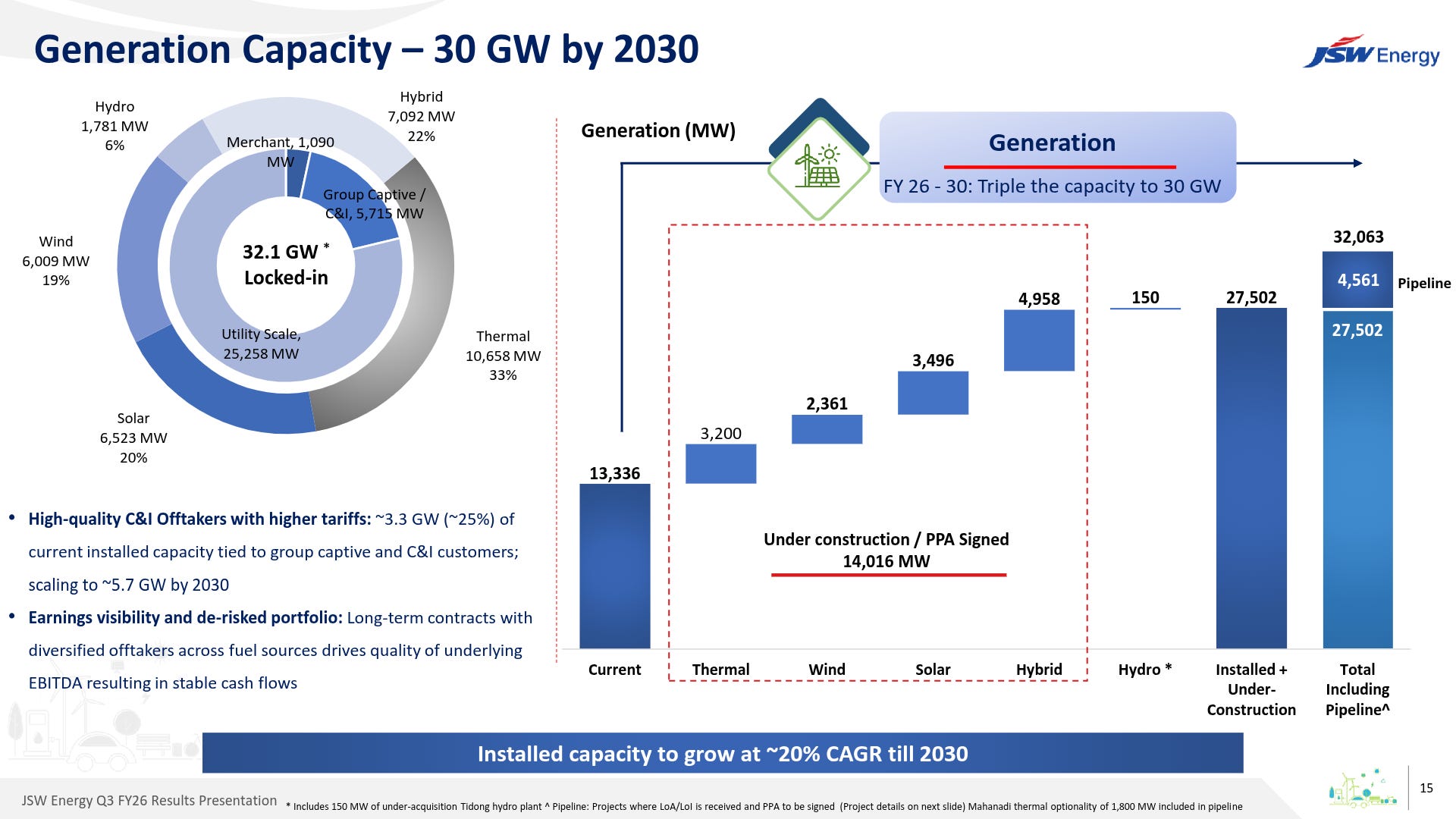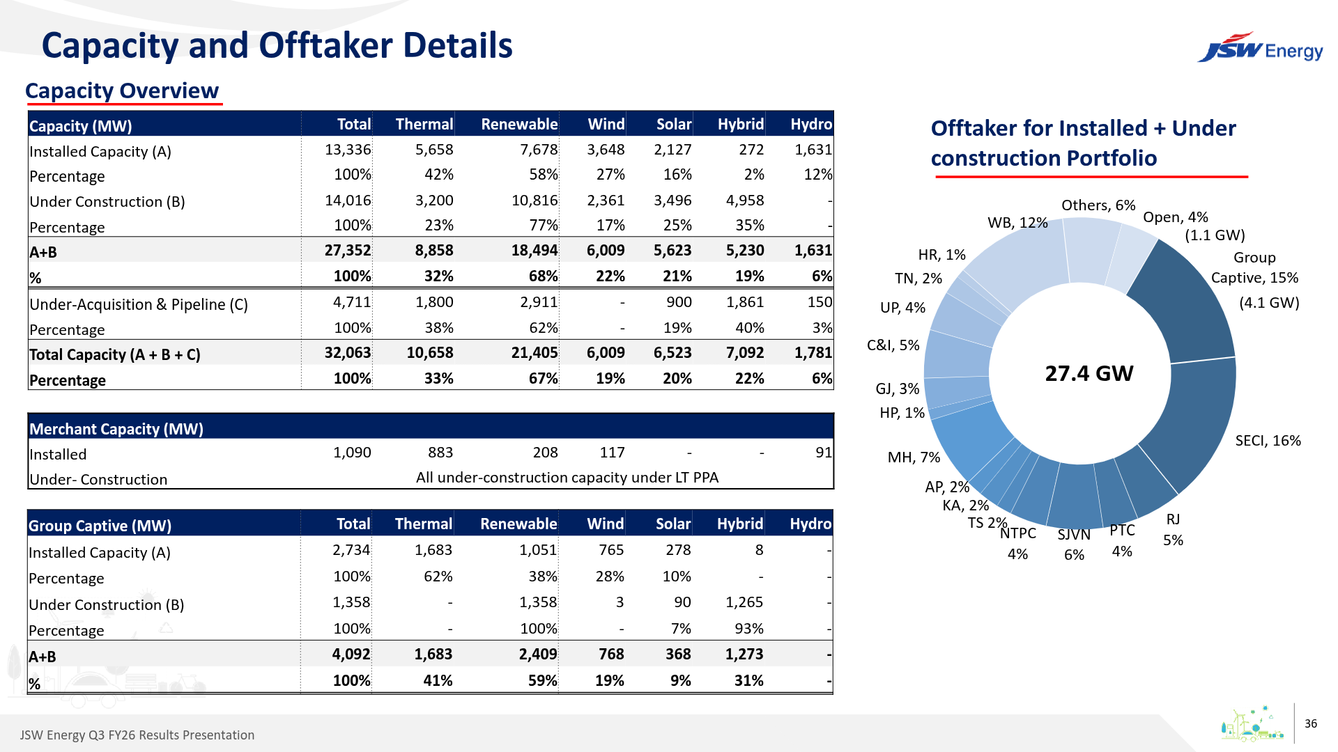JSW Energy is a leading Indian power producer transitioning from a thermal-heavy base to a diversified green energy portfolio. The company operates across the power value chain, including generation, transmission, and now green hydrogen production.