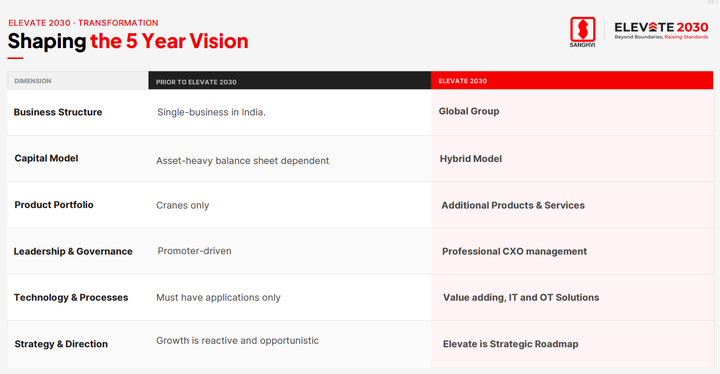 The company is transitioning from a domestic, asset-heavy crane business to a global, hybrid platform. The shift toward value-added services, diversified offerings, and professional management signals a move from cyclical execution to scalable, structured growth.