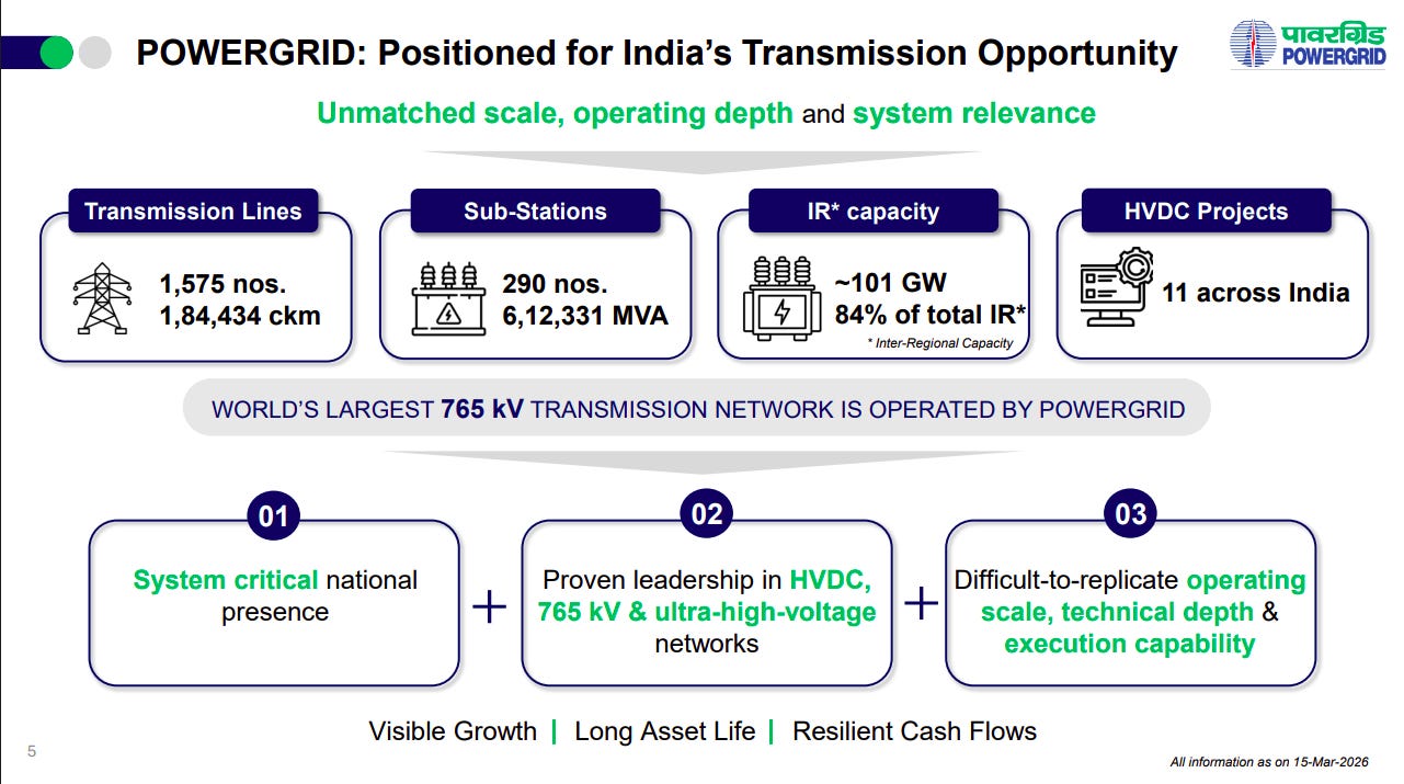 POWERGRID holds a system-critical position with unmatched scale in transmission, leadership in HVDC, and dominant inter-regional capacity. Its deep execution capability and high entry barriers create a durable moat that is difficult to replicate.