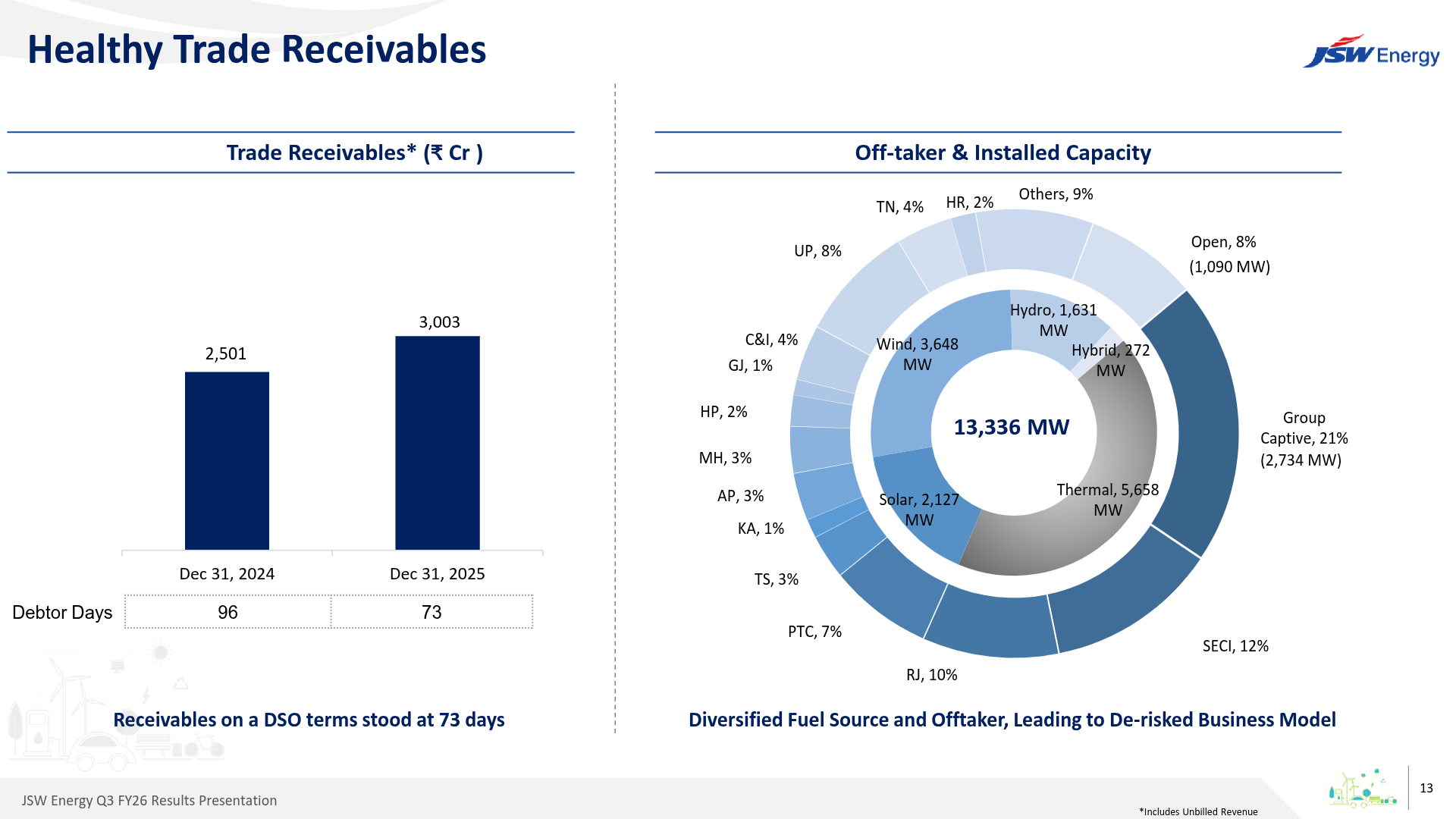 Liquidity risk has decreased as debtor days fell from 96 to 73, providing the cash flow stability required for heavy capital investments. Shifting toward higher-quality offtakers like SECI and group captives secures more predictable collection cycles.