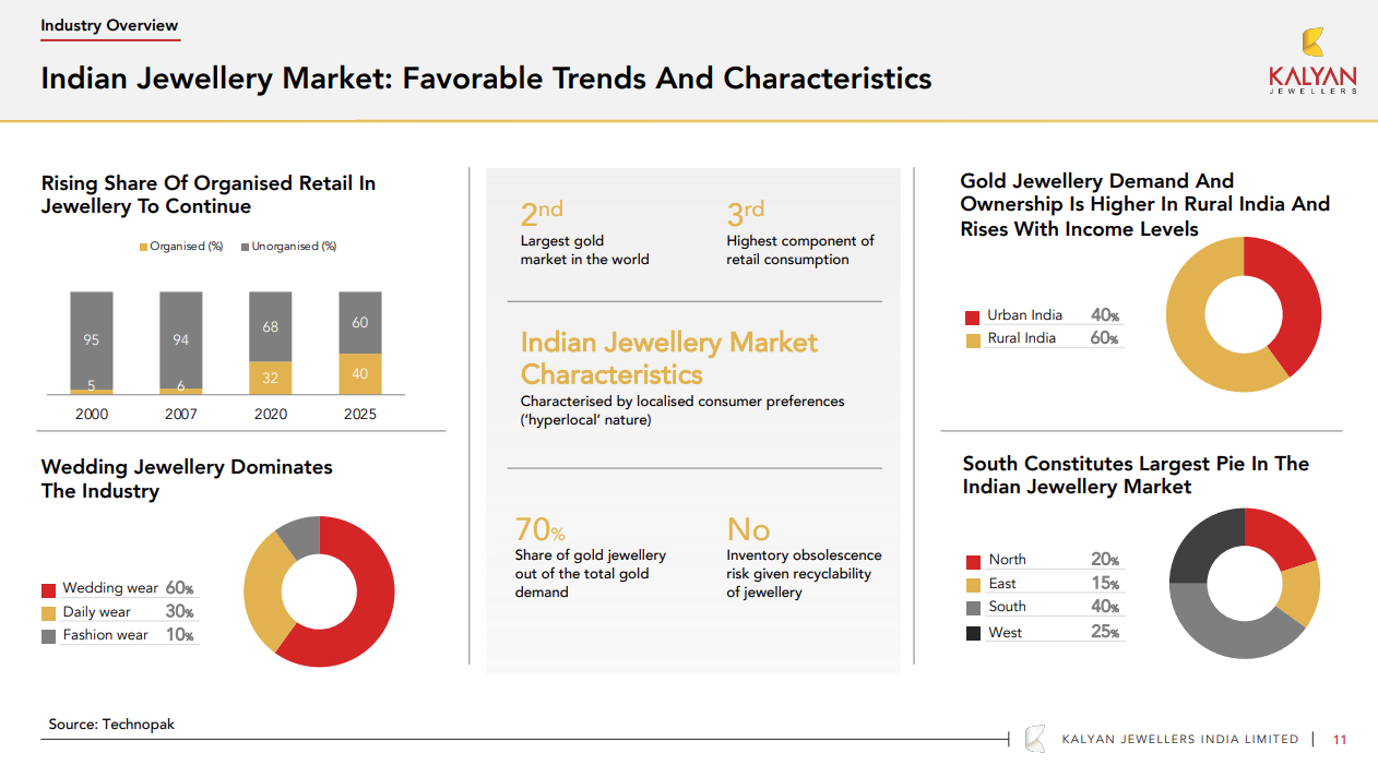 Kalyan Jewellers India Limited, one of the largest jewellery companies in India, started in 1993 and has since expanded across the country. They offer a wide range of jewellery products catering to special occasions like weddings, their highest-selling category, as well as daily wear. The company focuses on understanding customers’ preferences by utilizing local market expertise and region-specific marketing strategies.