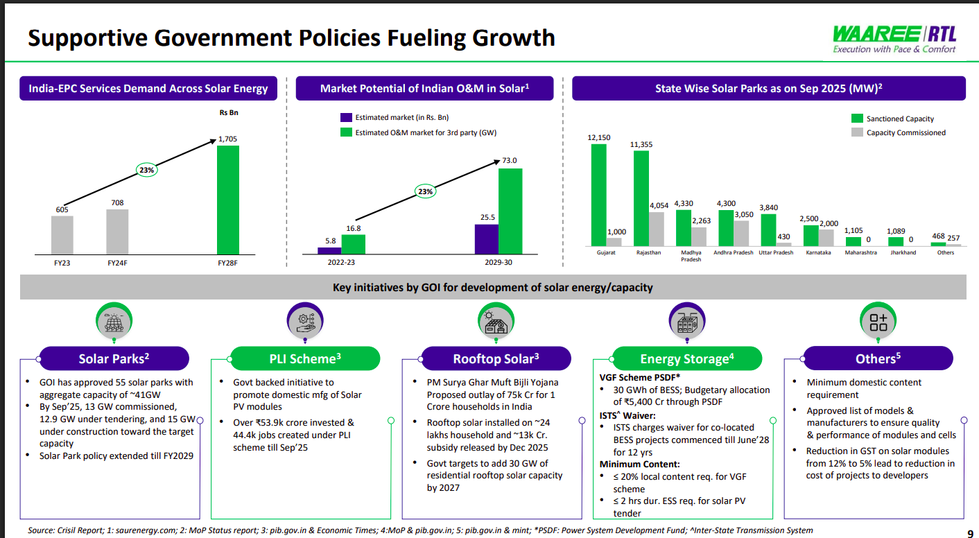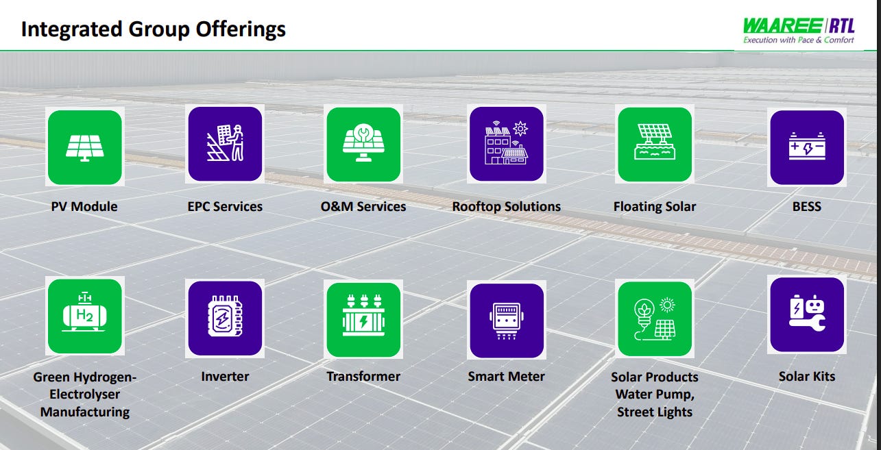 The group offers an end-to-end renewable energy ecosystem spanning PV modules, EPC, O&M, rooftop and floating solar, BESS, and allied equipment. This integrated portfolio positions it to capture value across the full solar and energy transition value chain.