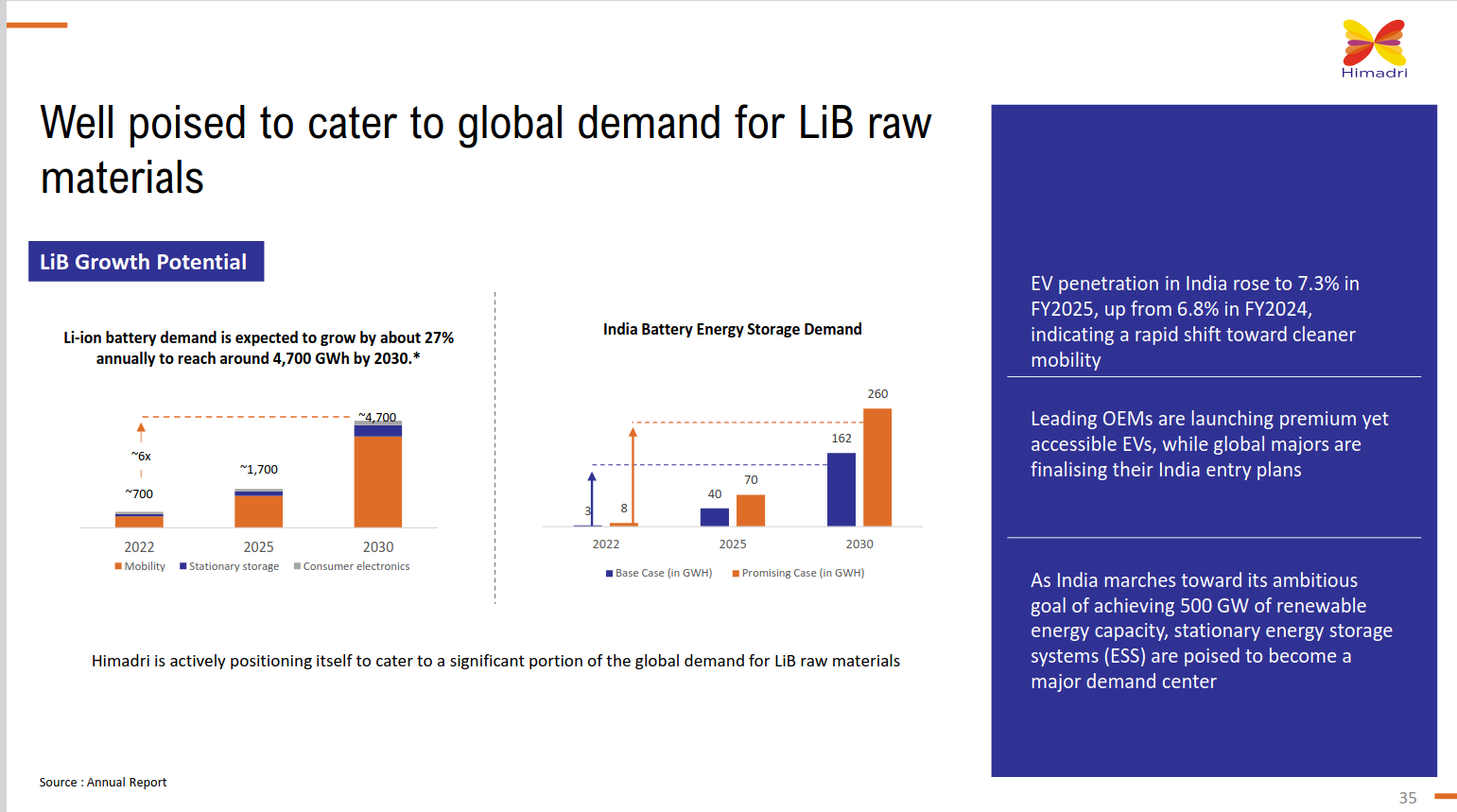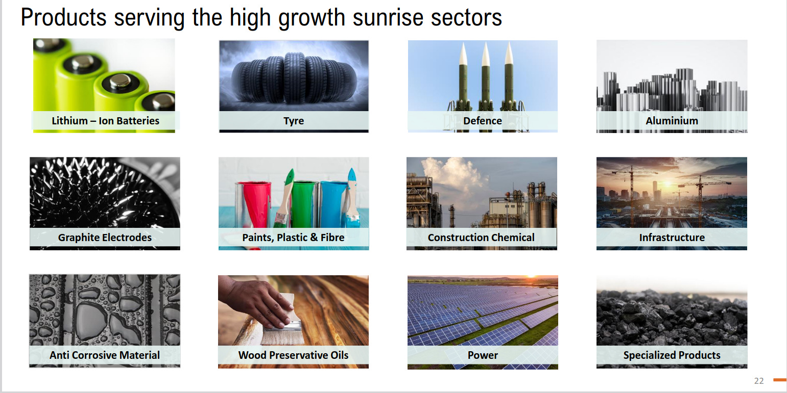 The product portfolio is aligned with multiple high-growth sectors including EV batteries, defence, infrastructure, construction chemicals, and power. This diversification positions the company to benefit from long-term structural demand across industrial and energy transitions.