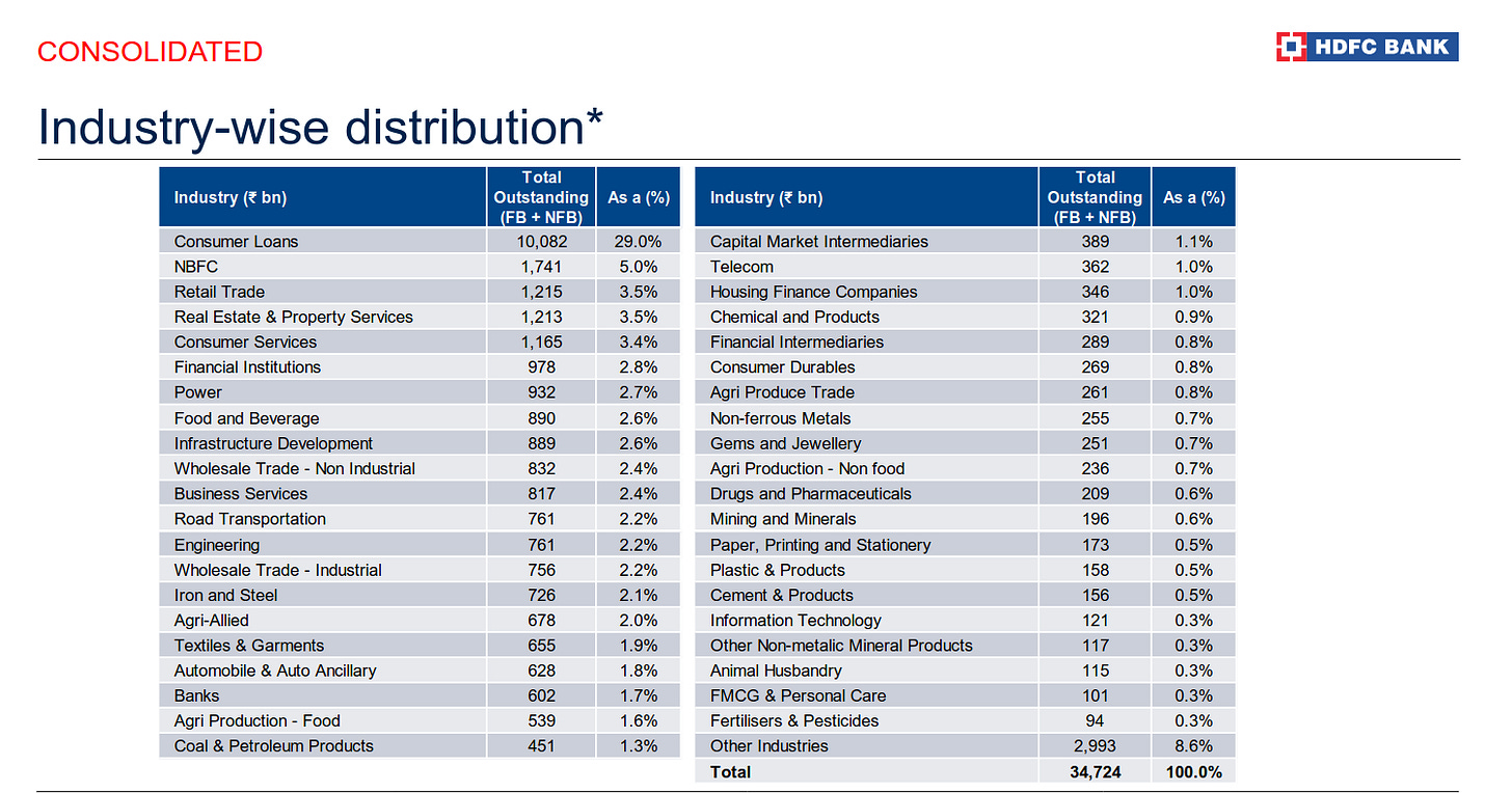 The loan book is well diversified, led by consumer loans at ~29% of total exposure, with no single industry showing outsized concentration. Exposure is spread across retail, services, infrastructure, manufacturing, and financial sectors, supporting portfolio stability.
