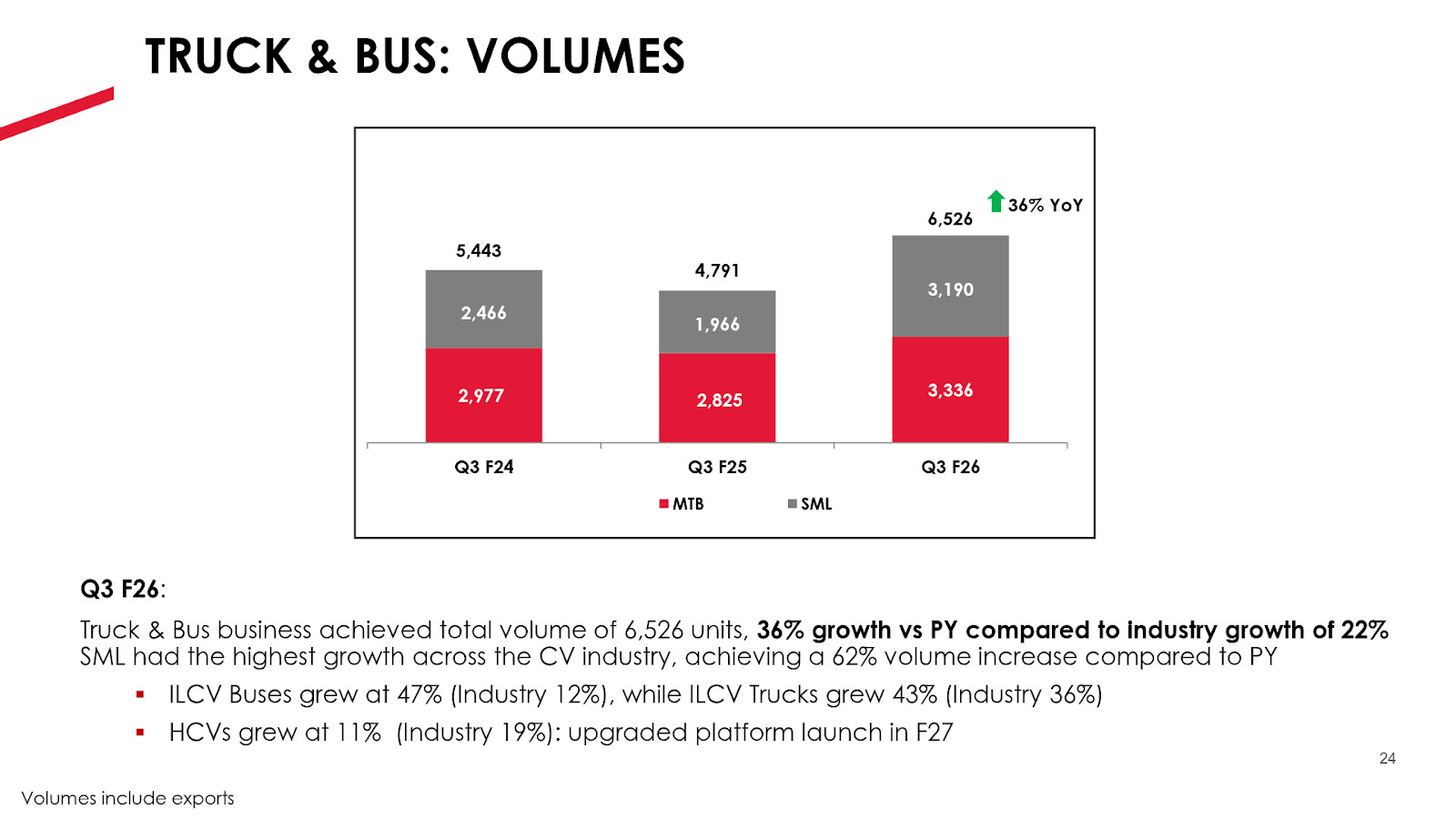 Outpacing industry growth in the truck and bus segment indicates a successful scale-up of commercial operations beyond their traditional core. Higher volumes in these heavy categories improve operational efficiency and provide a broader base for long-term service-led revenue.