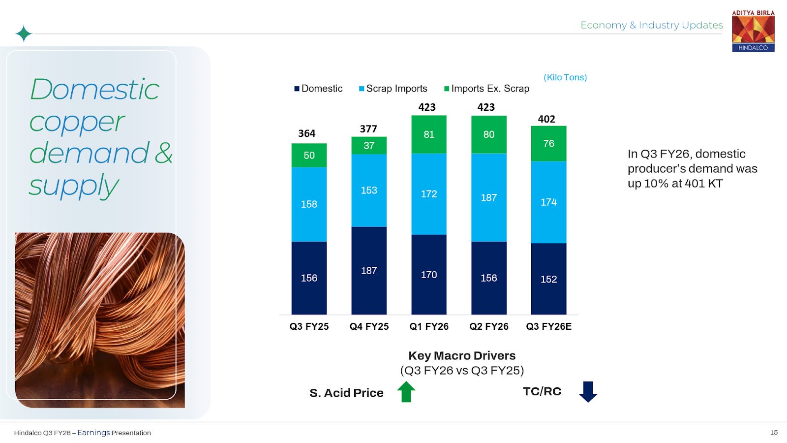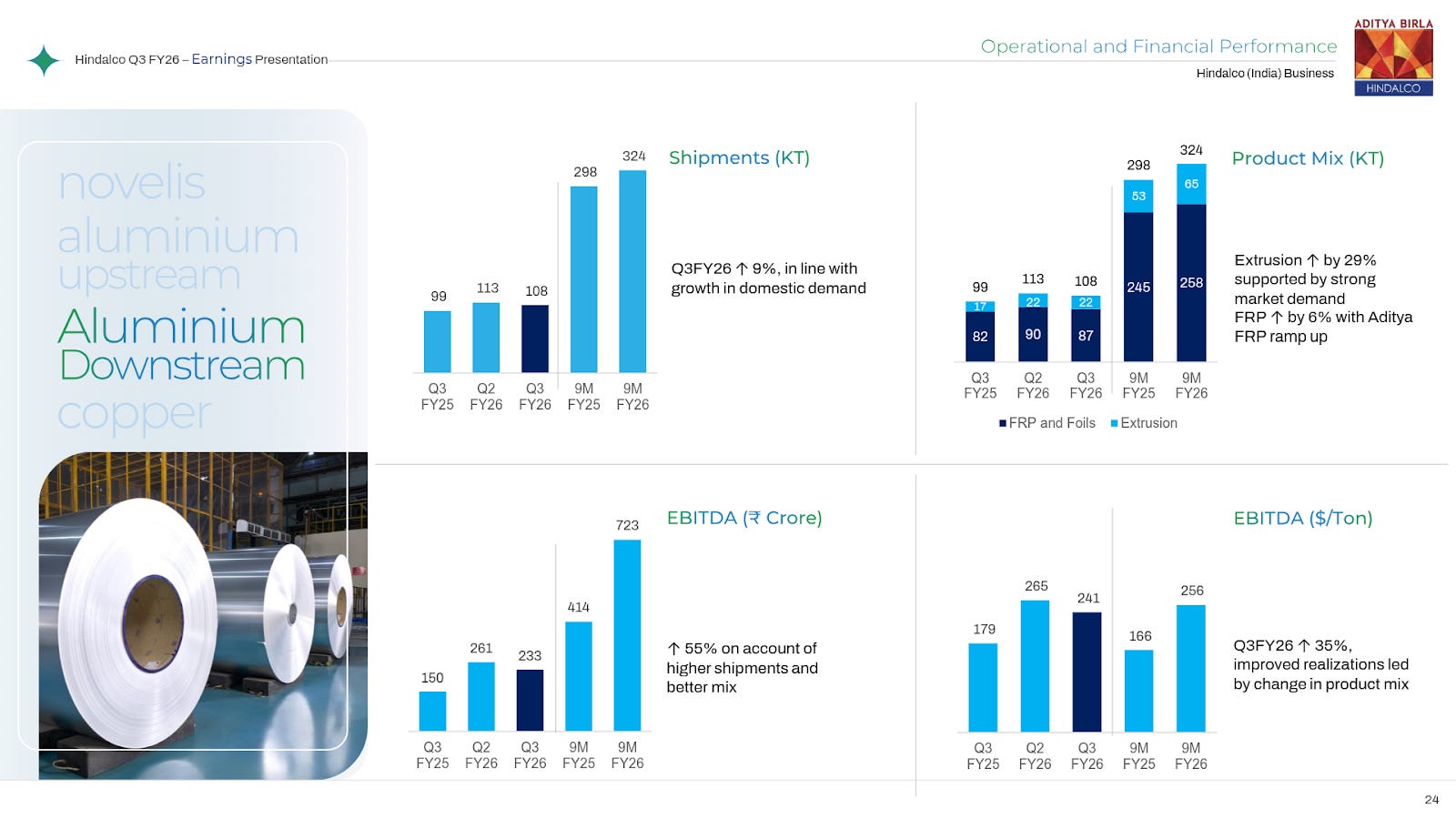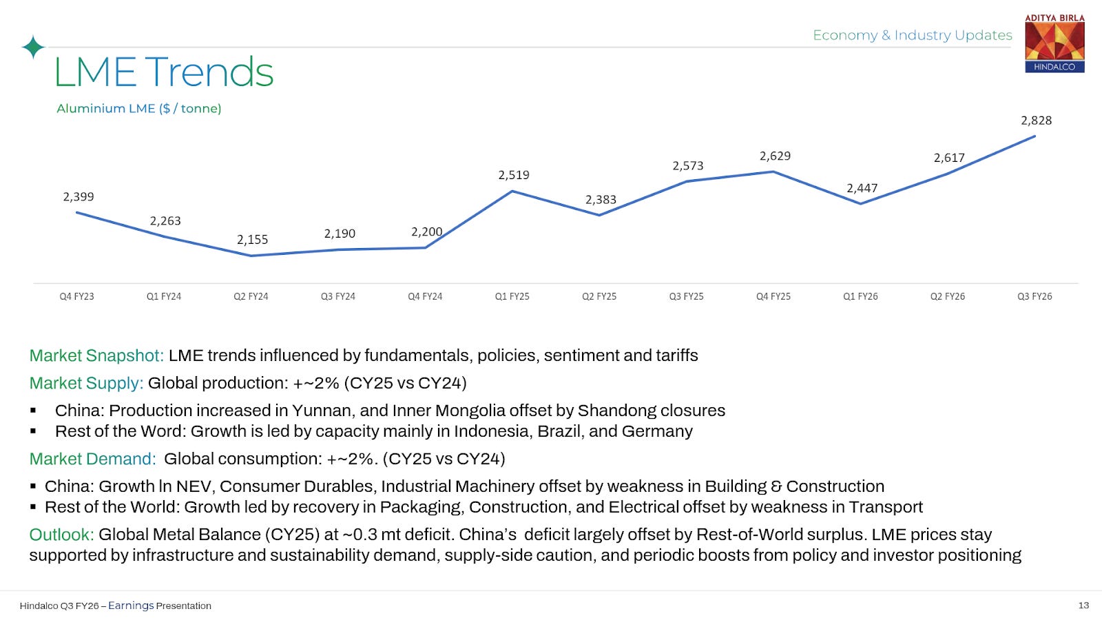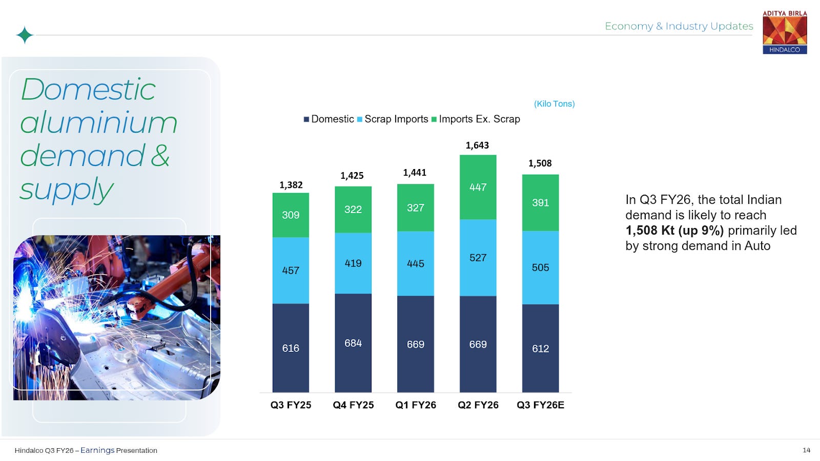 Strong 9% growth in domestic aluminium demand, led primarily by the automotive sector, indicates a robust industrial cycle that is absorbing local supply. A higher domestic consumption mix typically allows for better realizations compared to the export market, strengthening the quality of the India business earnings.