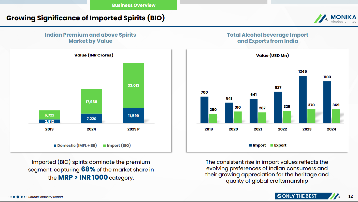 Monika Alcobev is a prominent player in the imported liquor sector, focusing on premium and luxury alcoholic beverages. Specializing in importing, sales, distribution, and marketing of luxury spirits, wines, and liqueurs in India and the Indian Subcontinent, including Travel Retail Duty Free Shops.